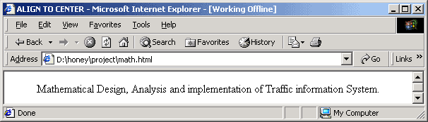 by <p> and </p> respectively. It is possible to align a paragraph left,right,center or justified.When a paragraph ends, a blank line is left. For example, consider the following HTML document.