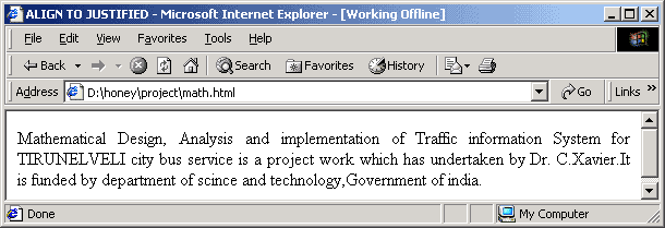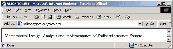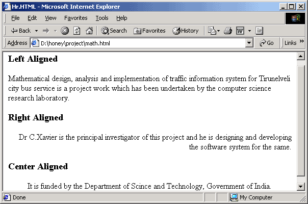 by <p> and </p> respectively. It is possible to align a paragraph left,right,center or justified.When a paragraph ends, a blank line is left. For example, consider the following HTML document.